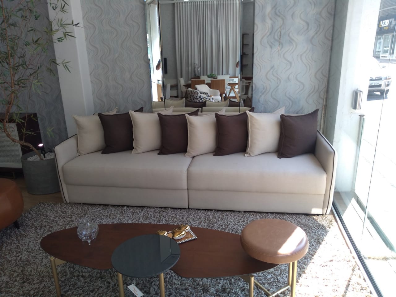 Sofá com tecidos modernos e variados pronto para sua sala. Sob medida.